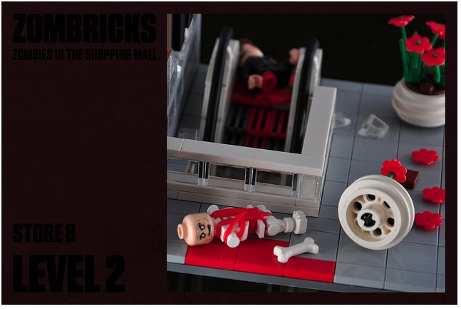 It's no secret how much we love LEGOs. We love building them, we love sharing them and we even look at other's LEGO labors of love. That's how I came across Xenomurphy's photostream on Flickr. In addition to creating custom zombie figurines, a whole movie set was made. The set consists of five tiers from a mall. Go through all the pictures below to see the attention to detail and all the goodness of a zombie horror flick. Thank you to Xenomurphy for allowing us to share this zombielicious delight!